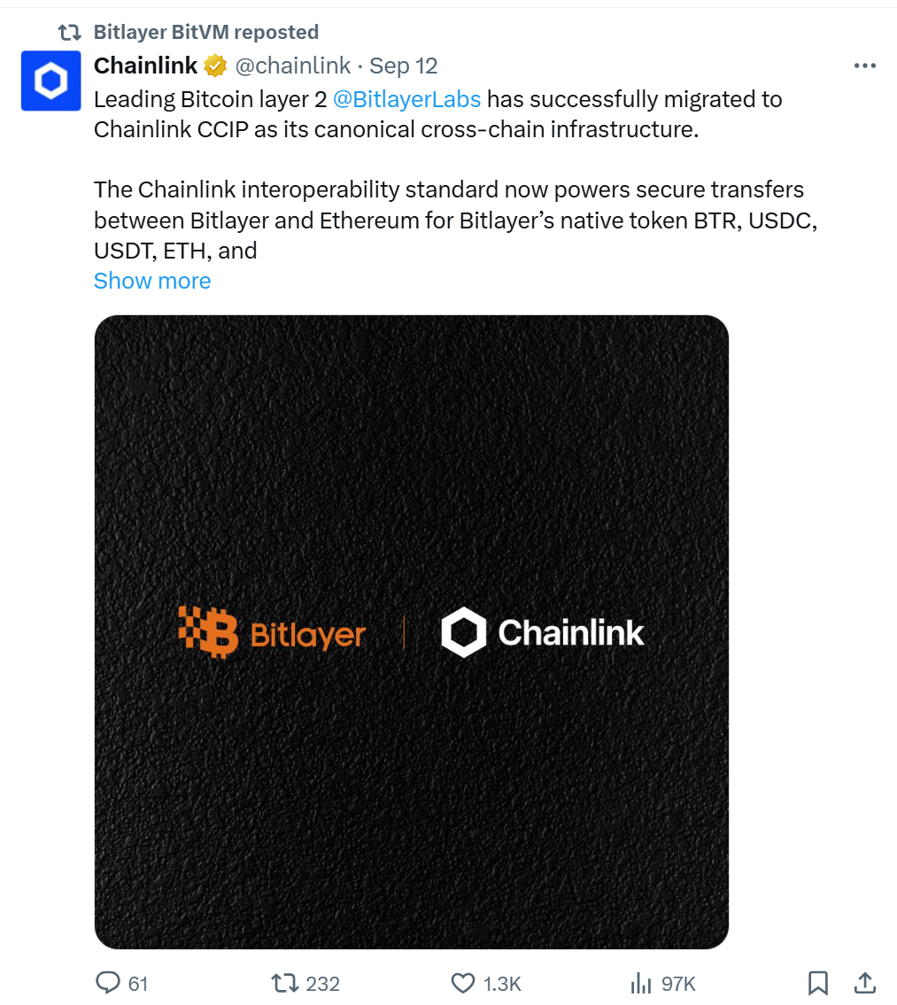 Bitlayer Integrates Chainlink CCIP as Canonical Cross-Chain Infrastructure